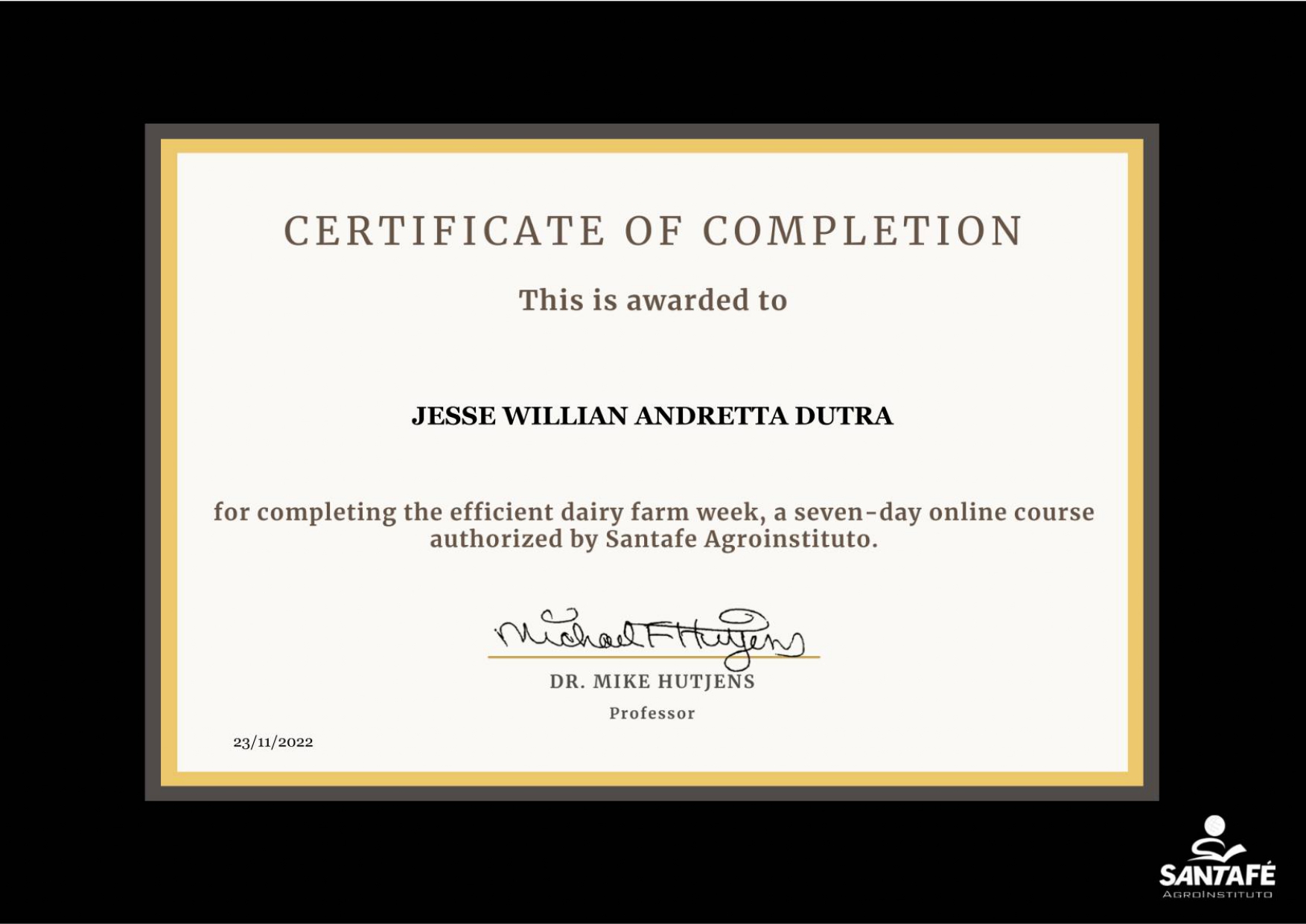 When you finish, you will get a DIGITAL CERTIFICATE signed by Dr. Hutjens.